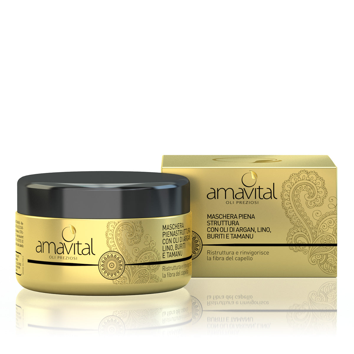 Cremosa e ricca di principi attivi dalle proprietà ristrutturanti, rinvigorenti e ricompattanti, questa esclusiva maschera agli Oli botanici di Argan, Buriti, Tamanu e Lino ricompatta le cuticole riparando la fibra capillare e nutre i capelli dalle radici alle punte, rendendoli corposi e vitali.